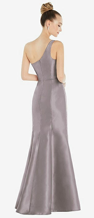 Bow One-Shoulder Satin Trumpet Gown in cashmere gray