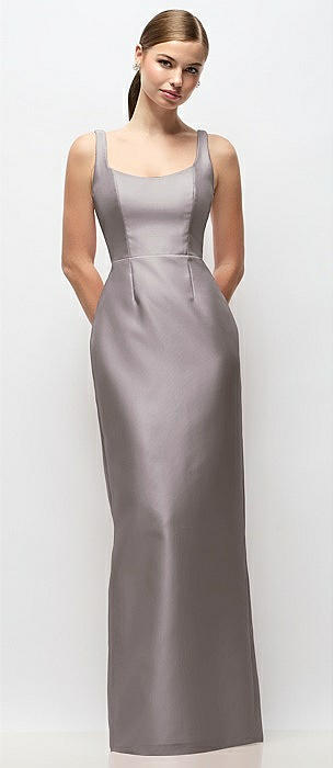 Scoop Neck Corset Satin Maxi Dress with Floor-Length Bow Tails in cashmere gray