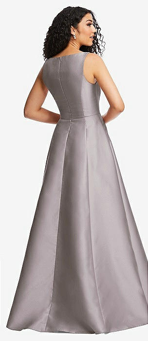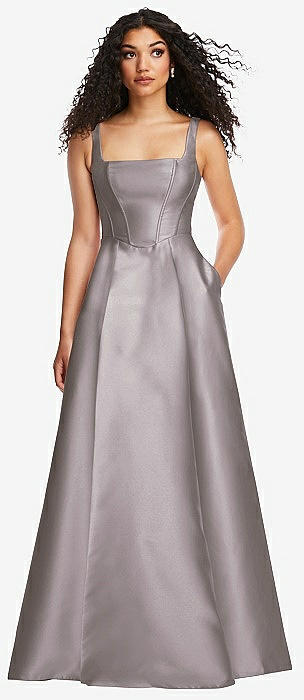 Boned Corset Closed-Back Satin Gown with Full Skirt and Pockets in cashmere gray