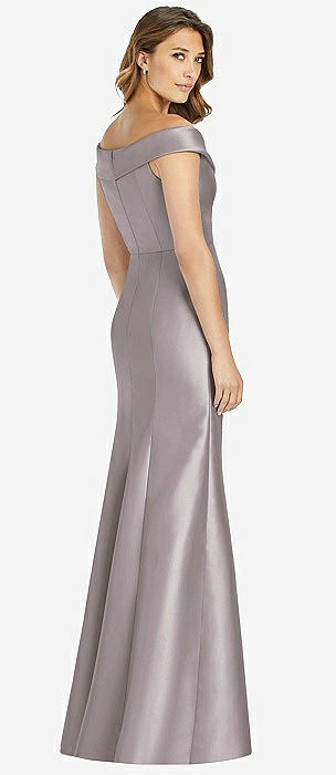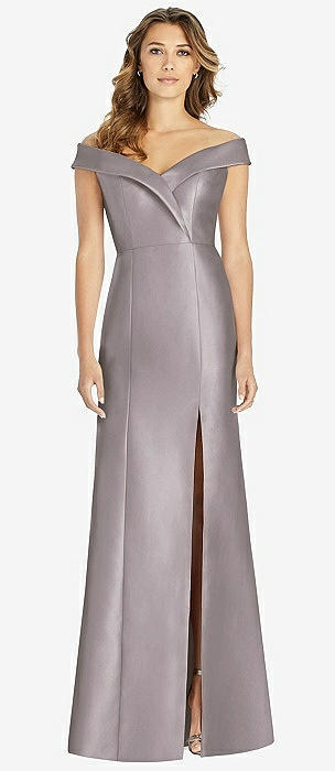 Off-the-Shoulder Cuff Trumpet Gown with Front Slit in cashmere gray