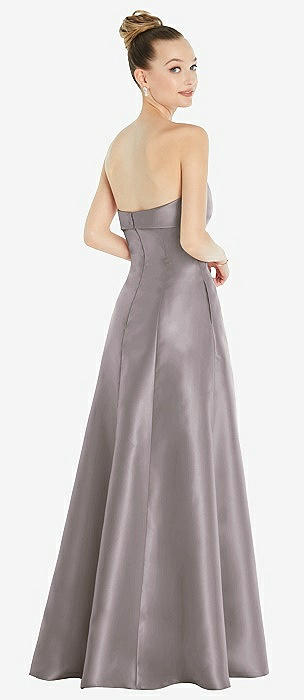 Strapless Notch Satin Gown with Pockets in cashmere gray