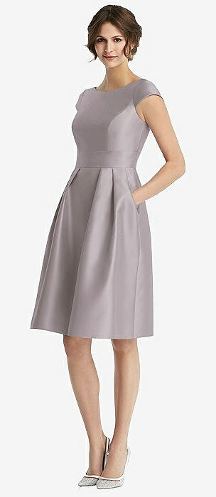 Cap Sleeve Pleated Cocktail Dress with Pockets in cashmere gray