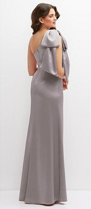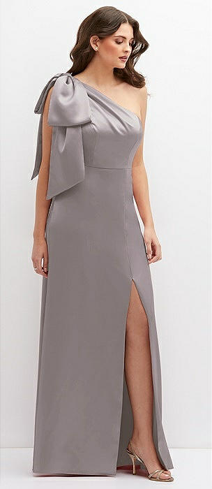 One-Shoulder Satin Maxi Dress with Chic Oversized Shoulder Bow