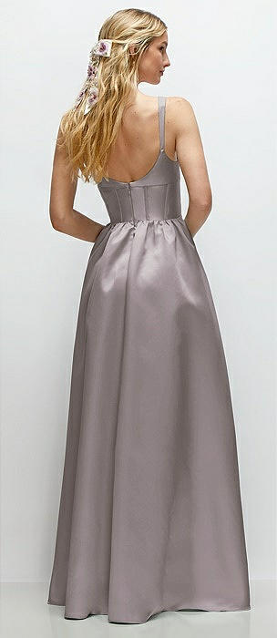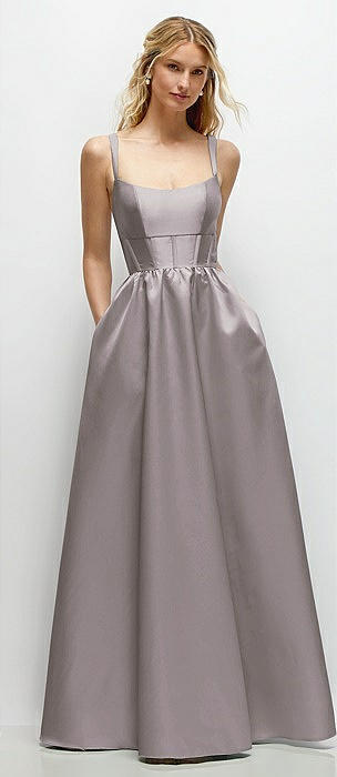 Scoop Neck Drop Basque Skirt Satin Maxi Dress with Pockets in cashmere gray