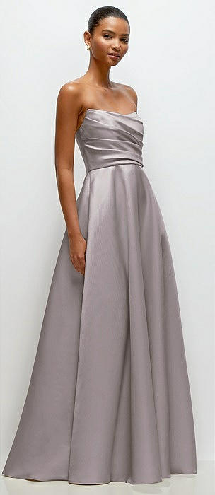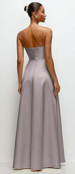 Strapless Draped Cat-Eye Satin Maxi Dress with Full Skirt in cashmere gray