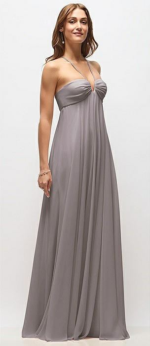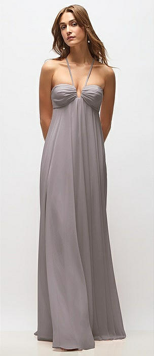 Draped Chiffon Grecian Column Gown with Convertible Straps in cashmere gray