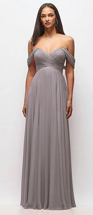 Gray Dessy Off-The-Shoulder Bridesmaid Dresses