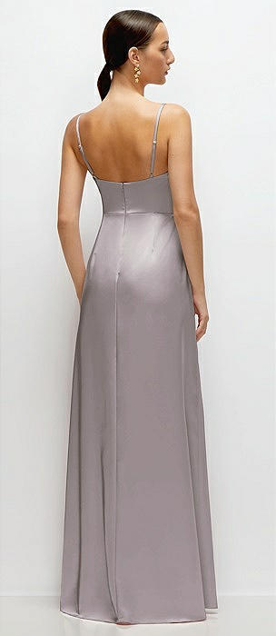 Cowl Neck Satin Maxi Dress with Adjustable Spaghetti Straps in cashmere gray