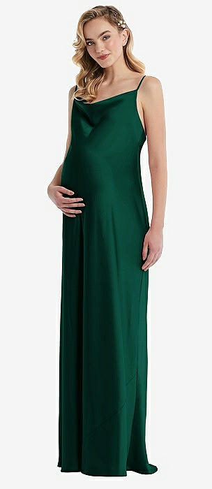 Cowl-Neck Tie-Strap Maternity Slip Dress in hunter green