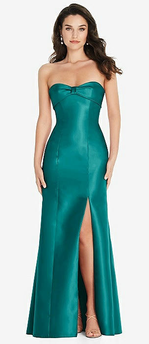 Bow Cuff Strapless Princess Waist Trumpet Gown in jade