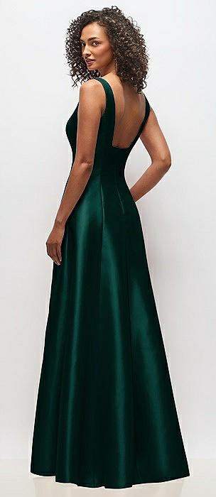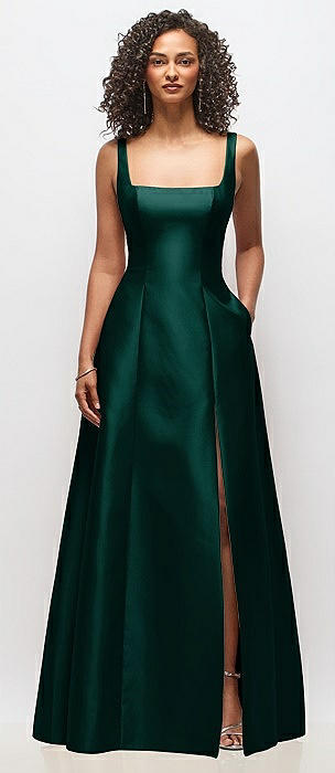 Sleeveless Square-Neck Princess Line Gown with Pockets in evergreen