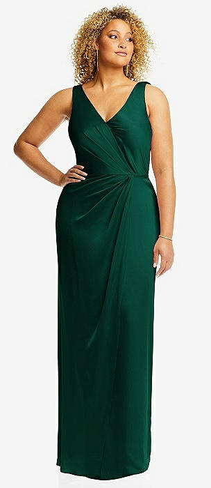 Faux Wrap Whisper Satin Maxi Dress with Draped Tulip Skirt in hunter green