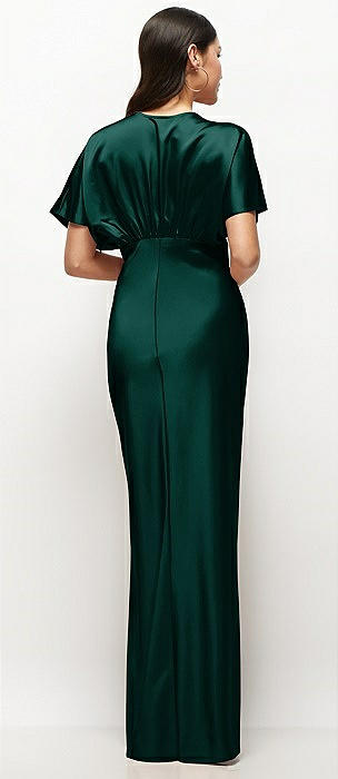 Plunge Neck Kimono Sleeve Satin Bias Maxi Dress in evergreen
