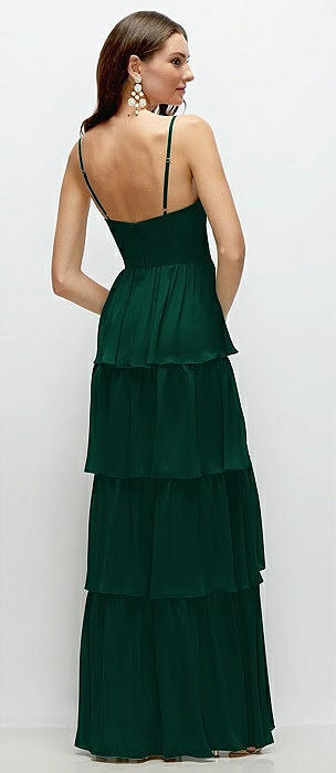 Bustier-Style Chiffon Tiered Ruffle Maxi Dress with Adjustable Straps in hunter green