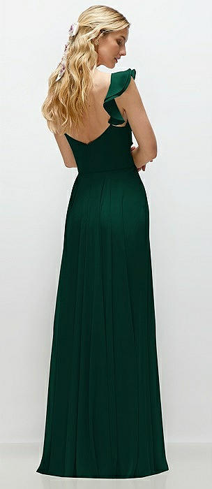 Convertible Ruffle Strap Chiffon Maxi Dress with Full Circle Skirt in hunter green