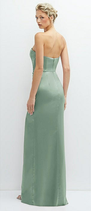 Strapless Topstitched Corset Satin Maxi Dress with Draped Column Skirt in seagrass