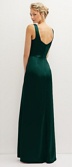 Square-Neck Satin A-line Maxi Dress with Front Slit in evergreen