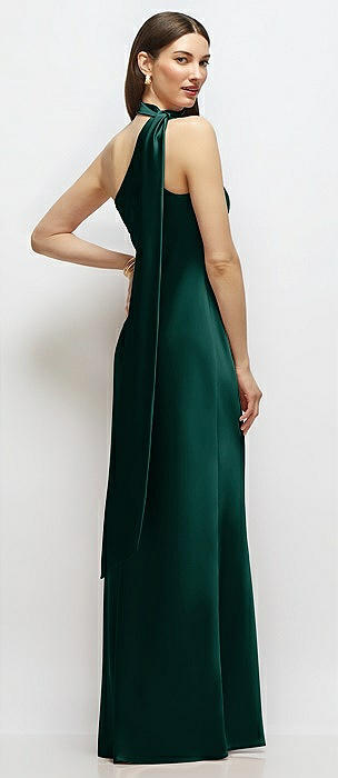 Draped Scarf Halter Open-Back Stretch Satin Bias Maxi Dress with Adjustable Straps in evergreen