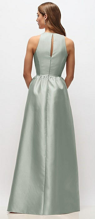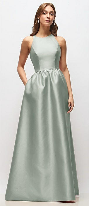 Sleeveless Keyhole Back Satin Maxi Dress in willow green