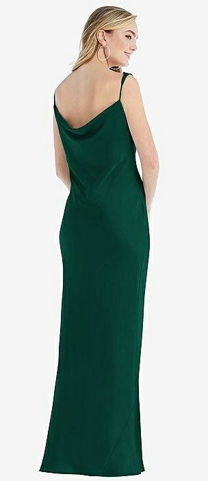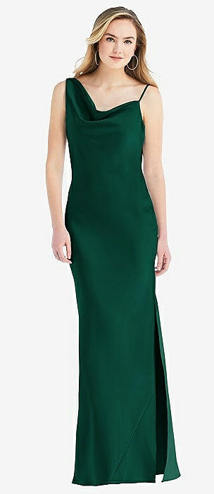 Asymmetrical One-Shoulder Cowl Maxi Slip Dress in hunter green