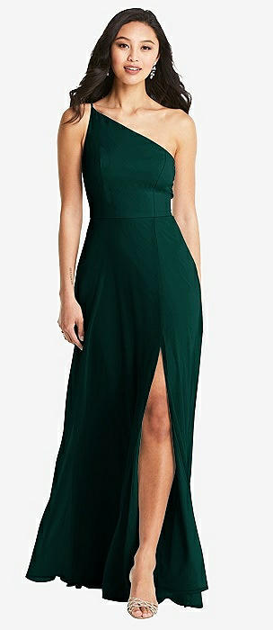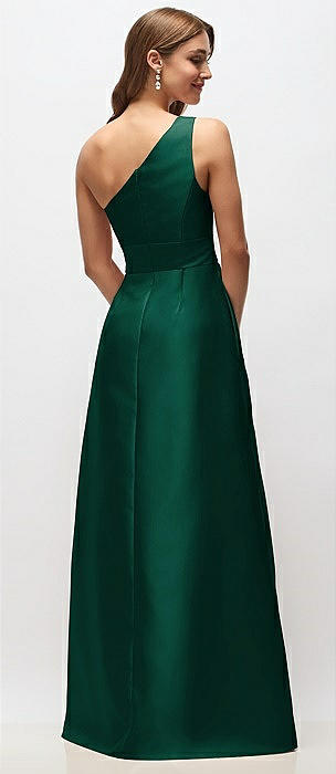 Bow One-Shoulder Satin Trumpet Gown in hunter green