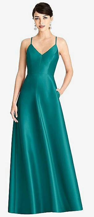 Sleeveless Pleated Skirt High Low Dress with Pockets in jade
