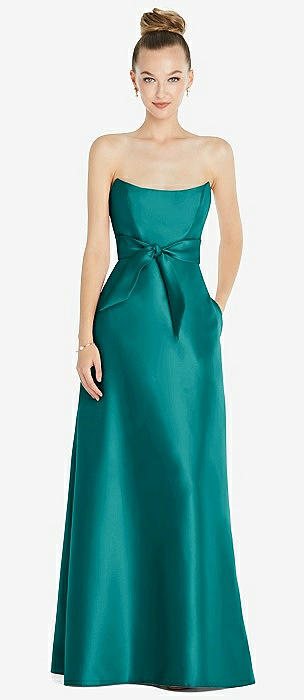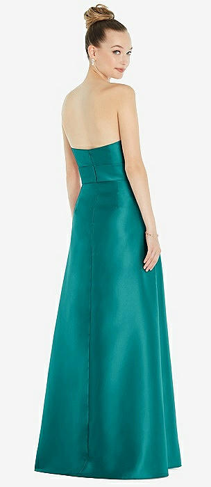 Basque-Neck Strapless Satin Gown with Mini Sash in jade