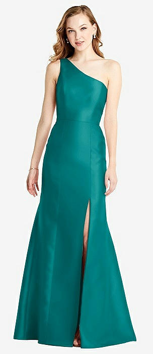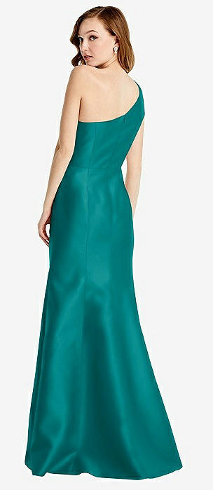 Bow One-Shoulder Satin Maxi Dress with Trumpet Skirt in jade