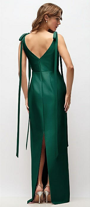 Bateau Neck Satin Column Maxi Dress with Exaggerated Tail Bow Straps in hunter green
