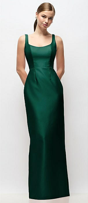 Scoop Neck Satin Column Maxi Dress in hunter green