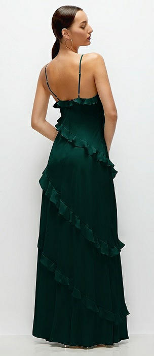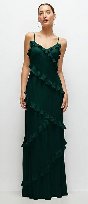 Asymmetrical Ruffle Chiffon Bias Slip Maxi Dress in evergreen