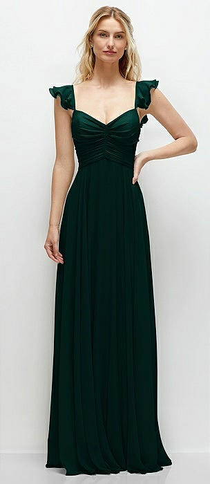 Ruffle Strap Chiffon Bustier Maxi Dress with Ruffle Hem A-Line Skirt in evergreen