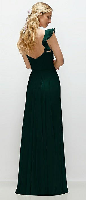 Convertible Ruffle Strap Chiffon Maxi Dress with Full Circle Skirt in evergreen