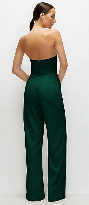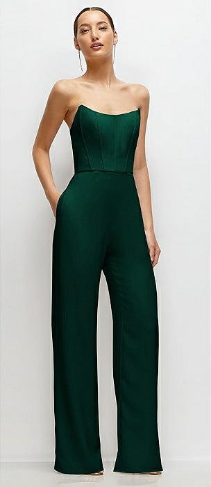 Strapless Cat-Eye Corset Crepe Wedding Jumpsuit in hunter green