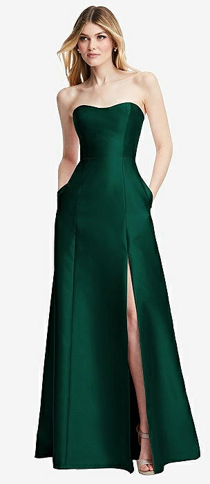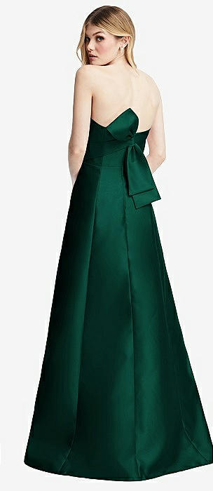 Strapless A-line Satin Gown with Modern Bow Detail in hunter green
