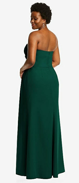 Strapless Pleated Faux Wrap Trumpet Gown with Front Slit in hunter green