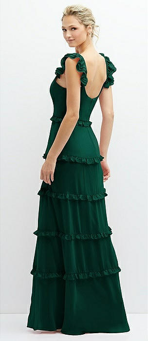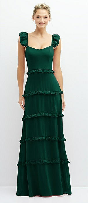 Tiered Chiffon Maxi A-line Dress with Convertible Ruffle Straps
