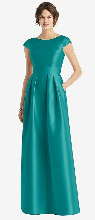 Cap Sleeve Pleated Cocktail Dress with Pockets in jade