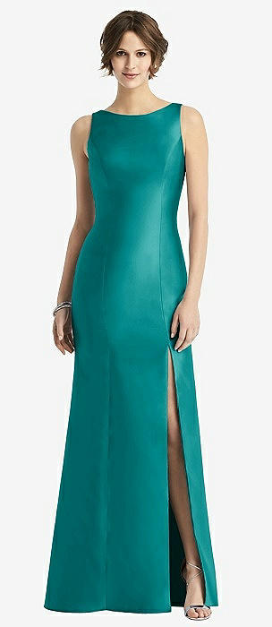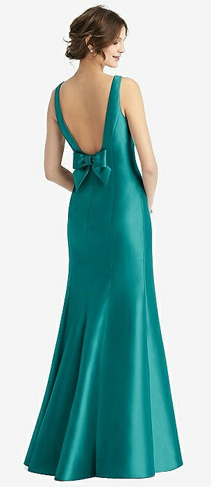 Sleeveless Satin Trumpet Gown with Bow at Open-Back in jade
