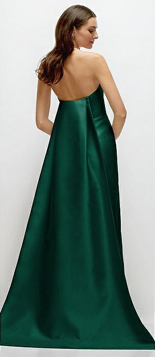 Strapless Satin Column Dress with Removeable Watteau Train in hunter green