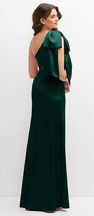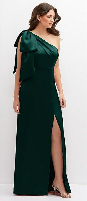 One-Shoulder Satin Maxi Dress with Chic Oversized Shoulder Bow