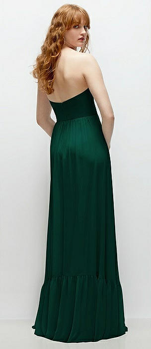 Strapless Cat-Eye Boned Bodice Maxi Dress with Ruffle Hem in jade