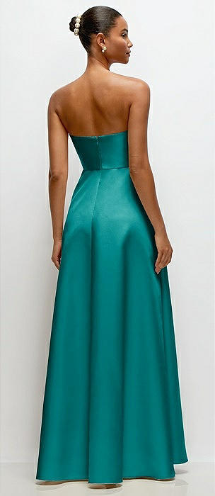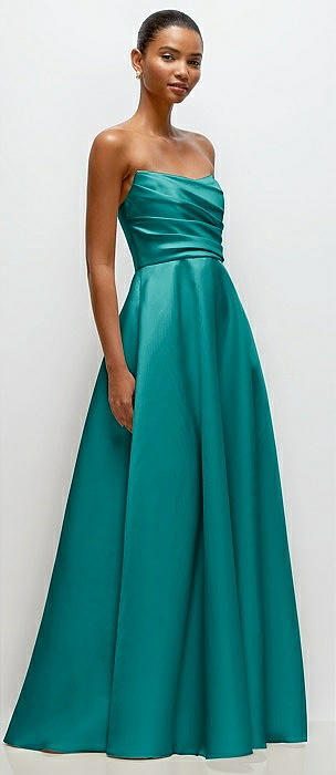 Strapless Draped Cat-Eye Satin Maxi Dress with Full Skirt in jade
