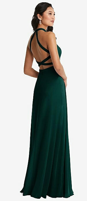 Shawl Collar Open-Back Halter Maxi Dress with Pockets in hunter green