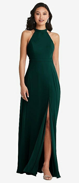 Green Dessy High Neck Bridesmaid Dresses