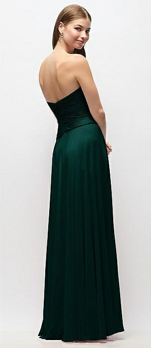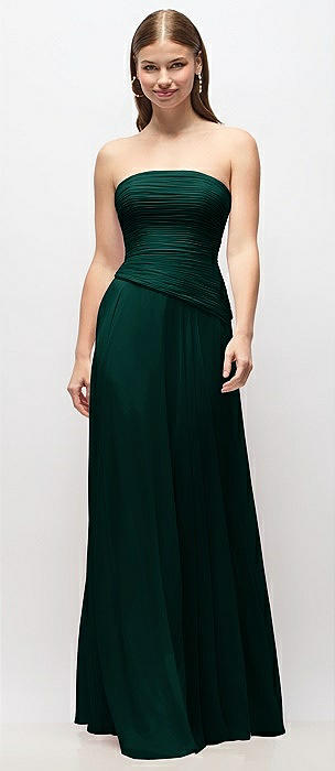 Strapless Chiffon Maxi Dress with Asymmetrical Ruched Drop Waist in evergreen