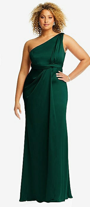 One-Shoulder Draped Twist Empire Waist Trumpet Gown in hunter green