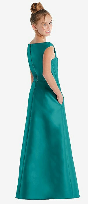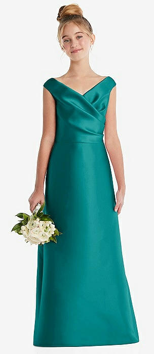 Off-the-Shoulder Draped Wrap Satin Junior Bridesmaid Dress in jade