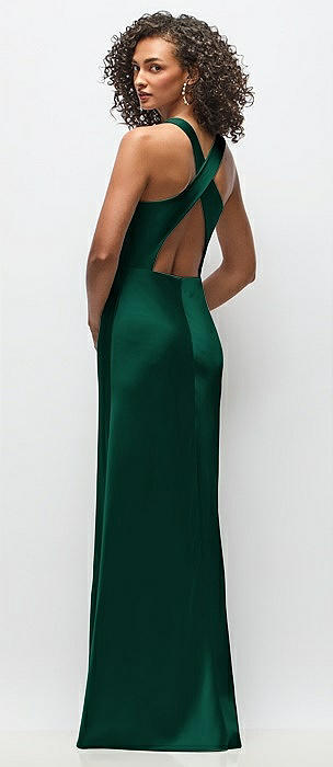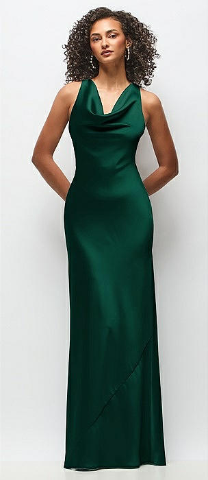 Cowl Neck Criss-Cross Back Satin Maxi Dress in hunter green