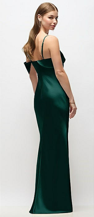 Basque-Neck A-Line Stretch Satin Maxi Dress with Off-the-Shoulder Drape in evergreen